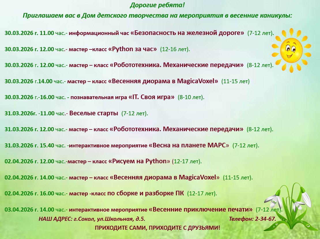 ПЛАН МЕРОПРИЯТИЙ В ВЕСЕННИЕ КАНИКУЛЫ!🌸