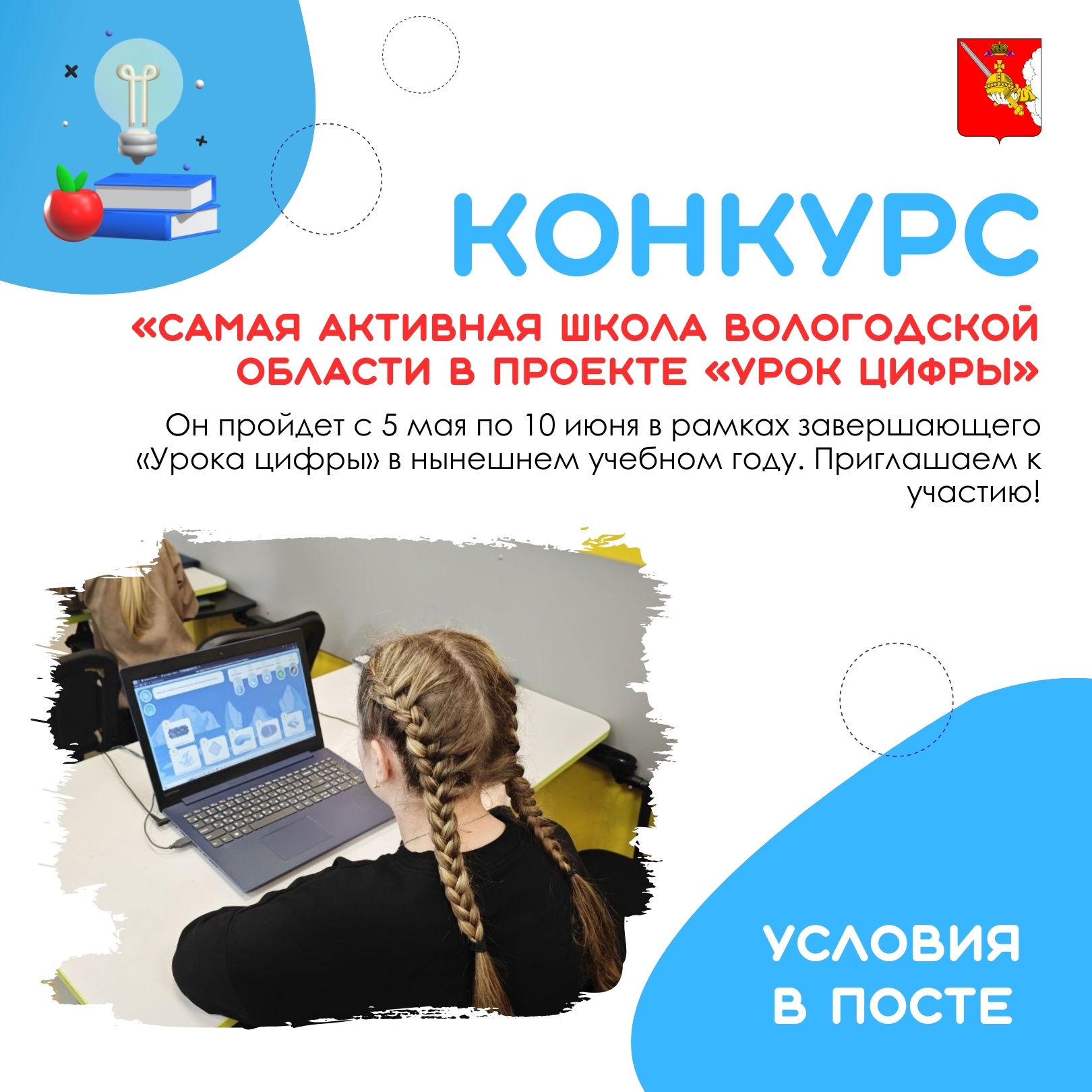 Приглашаем школы региона принять участие в конкурсе «Самая активная школа Вологодской области в проекте «Урок цифры».