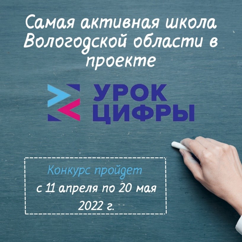 КОНКУРС "САМАЯ АКТИВНАЯ ШКОЛА ВОЛОГОДСКОЙ ОБЛАСТИ В ПРОЕКТЕ "УРОК ЦИФРЫ"