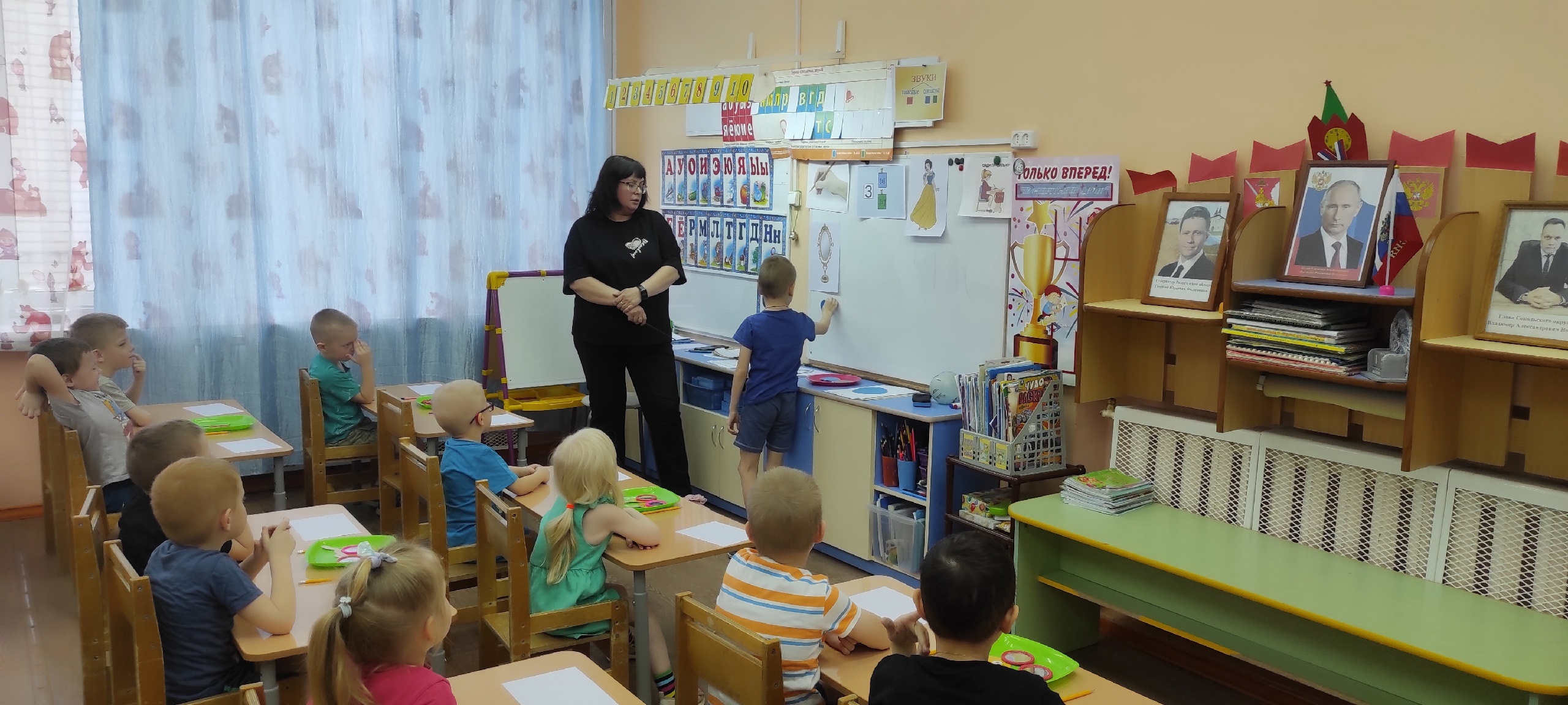 Занятия по обучению грамоте представила воспитатель первой категории Елена Владимировна Петухова. Вся работа с детьми была направлена на закрепление знаний, привитие интереса к учёбе, познавательной деятельности, воспитание умения слушать и чётко выполнять задания, развитие внимания и усидчивости. Валентина Николаевна и Ирина Васильевна поблагодарили детей, воспитателя за гостеприимство и удовлетворительную подготовку к школе.
