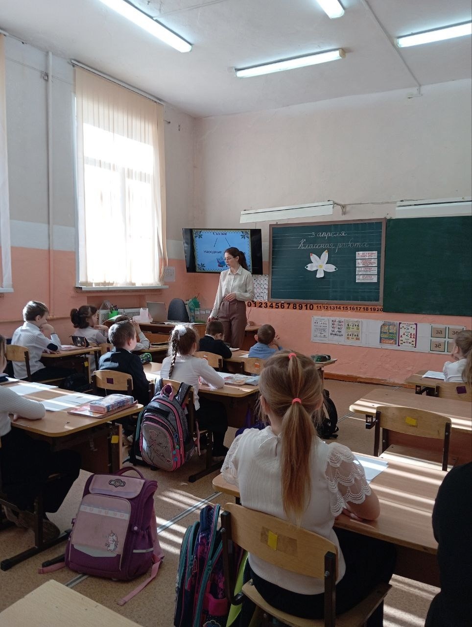 3 апреля в рамках Фестиваля Валентина Алексеевна провела открытый урок литературного чтения в 1Б классе на тему «Русская народная сказка «Петух и собака». Она старалась вызвать интерес к устному народному творчеству, развить умение находить сходство и различие между сказками русского народа.